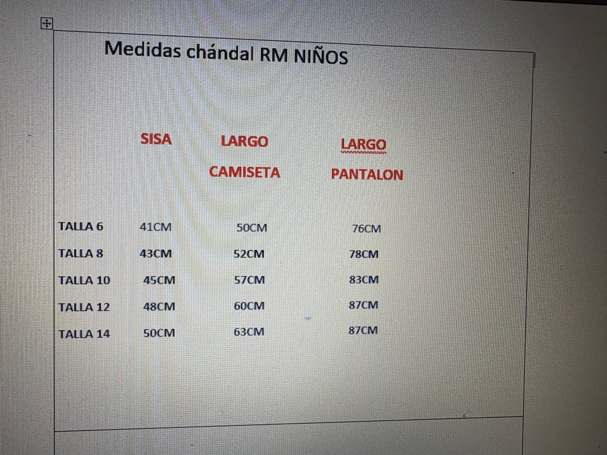 Tallas en foto con medidas